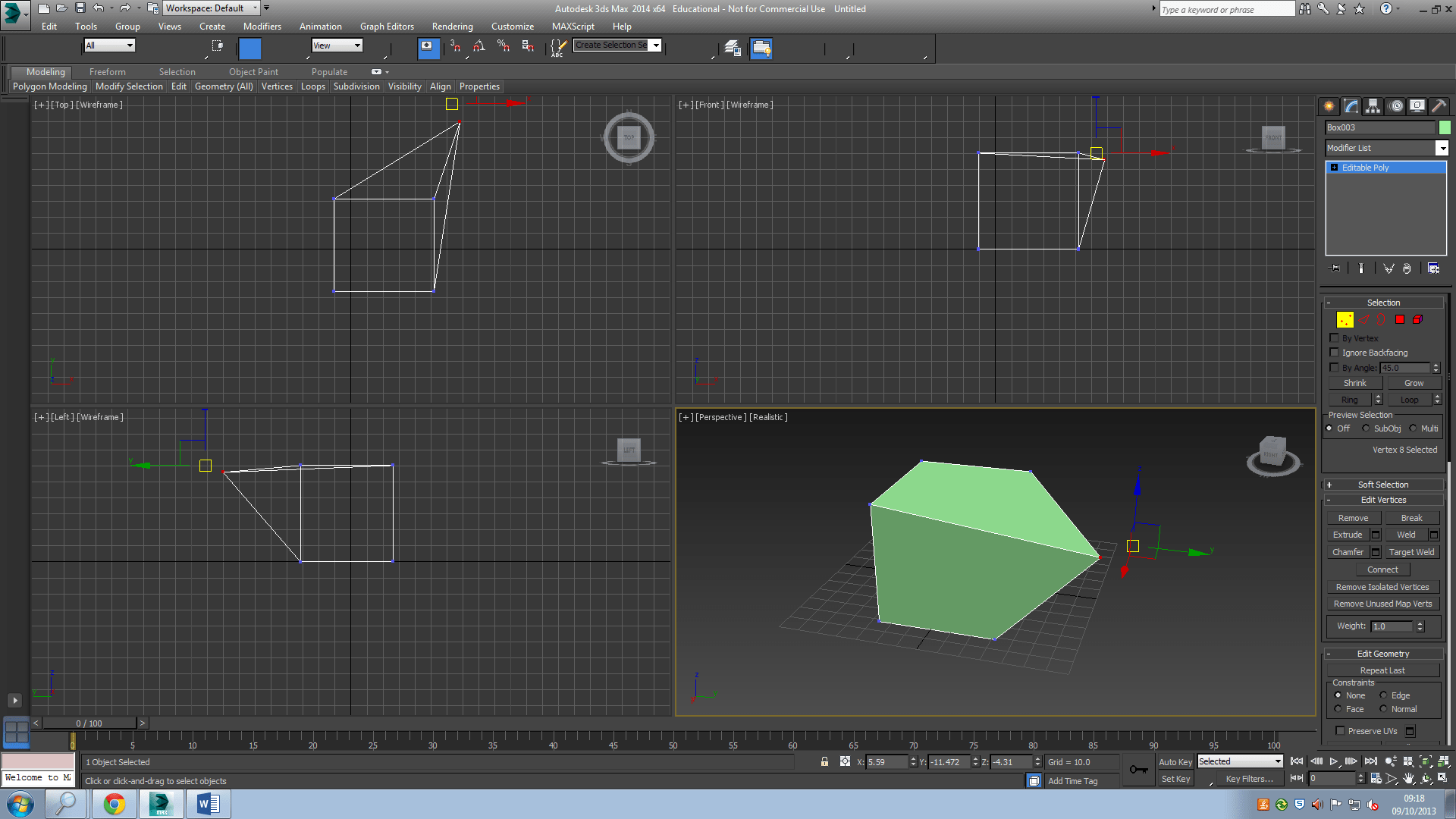 The extrude modifier adds depth to a shape object and makes it a parametric object. Select an edit poly or editable poly object. The distance the surface is extruded from the parent curve in current 3ds max units. Spline before extrusion below left: Spline before extrusion below left: