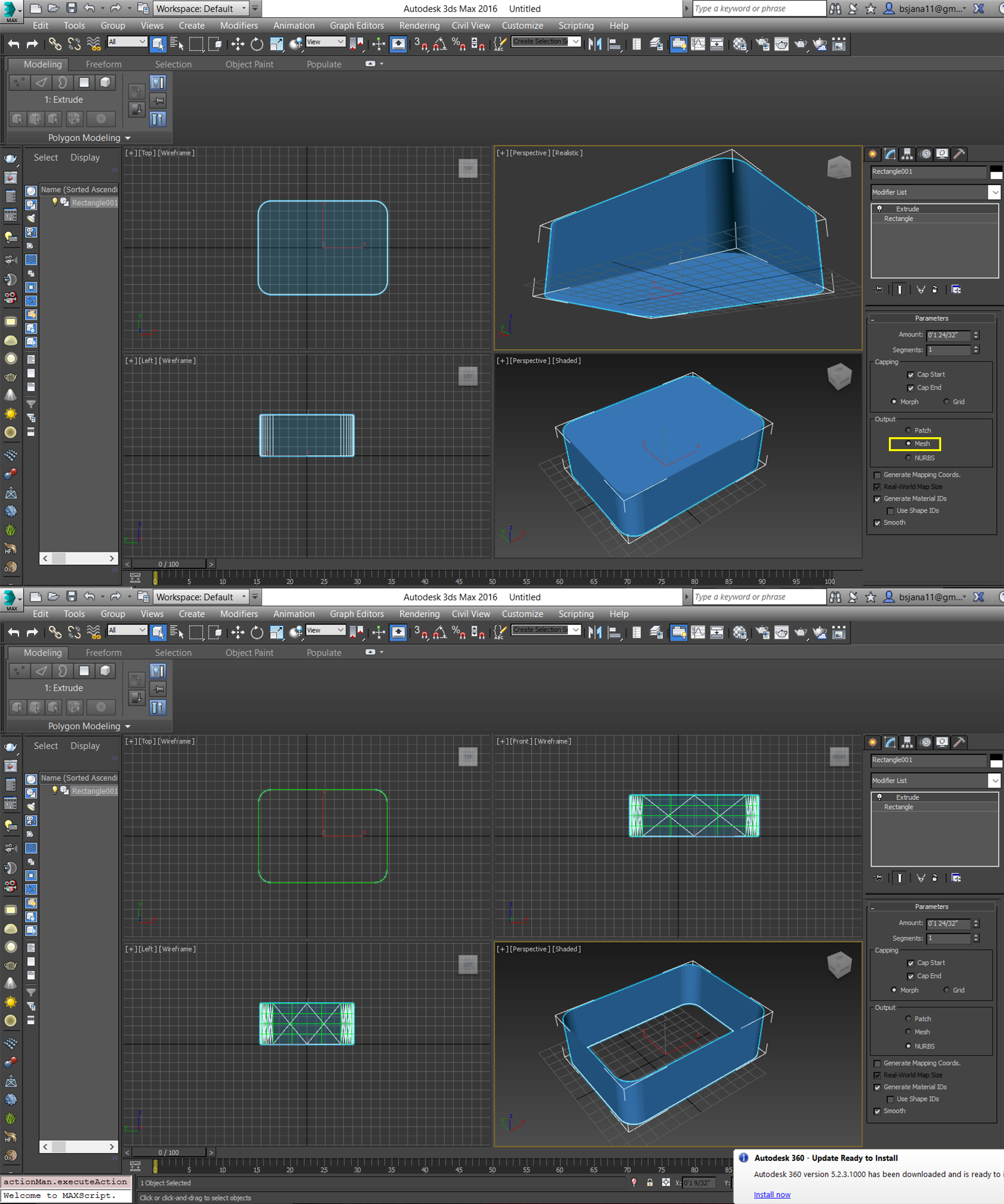 Select an edit poly or editable poly object... Extruded spline with cap end off below … The distance the surface is extruded from the parent curve in current 3ds max units. Extruded spline with cap end off below …