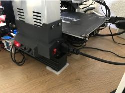 Note that this is not compatible with the thicker. I realized the supply just fits below the printer when oriented sideways, so here is a two part holder mounting the supply and while also covering the 220v/110v wiring.. Ender 3 lightbar switch box.